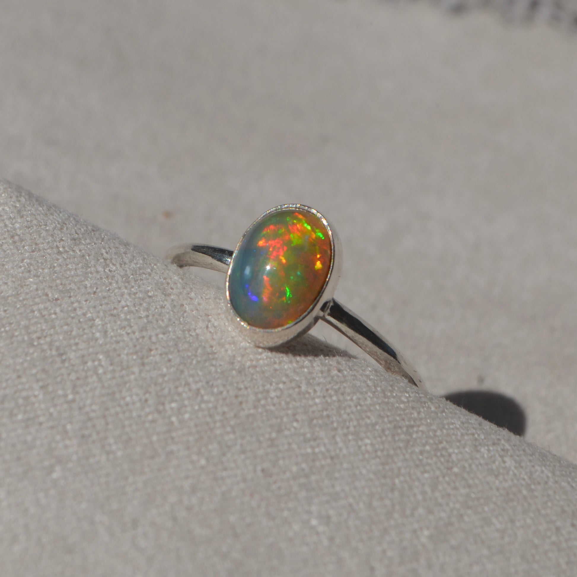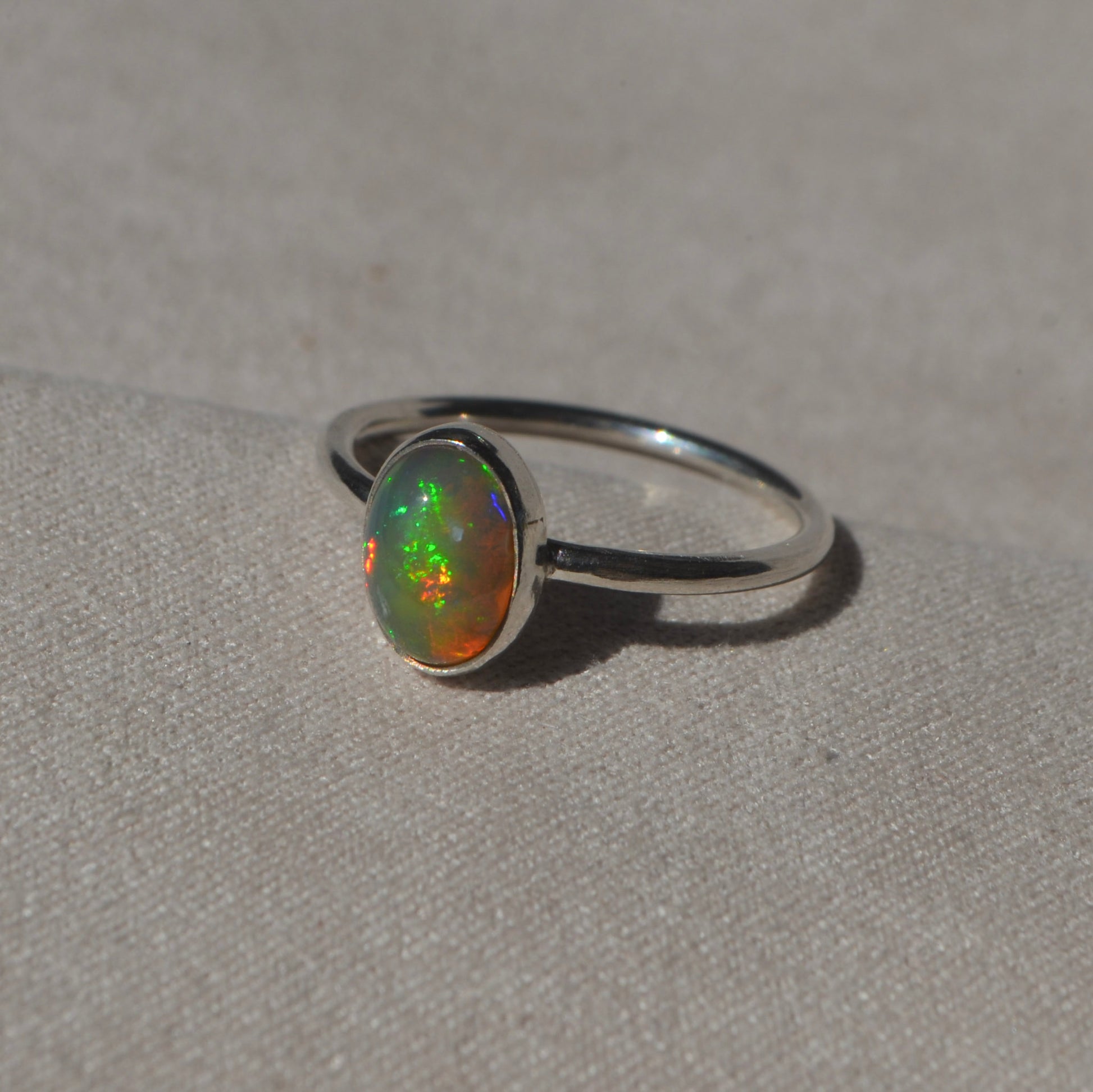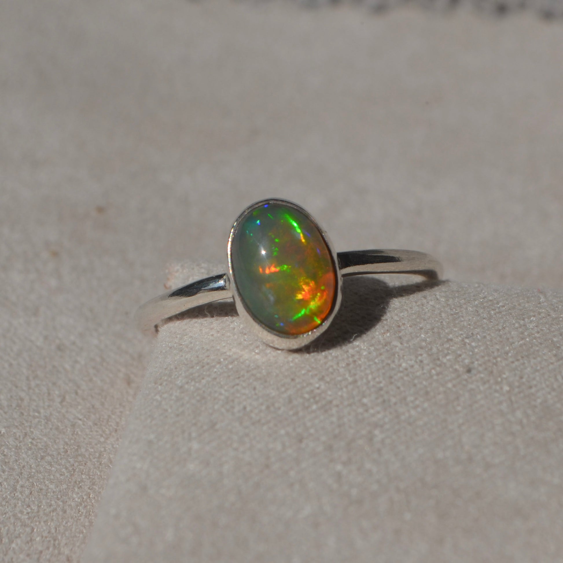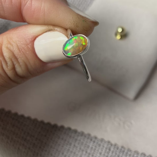 Un anillo Ligera con uno de esos ópalos que te hacen preguntarte… ¿cómo puede una piedra brillar con tantos colores? ✨