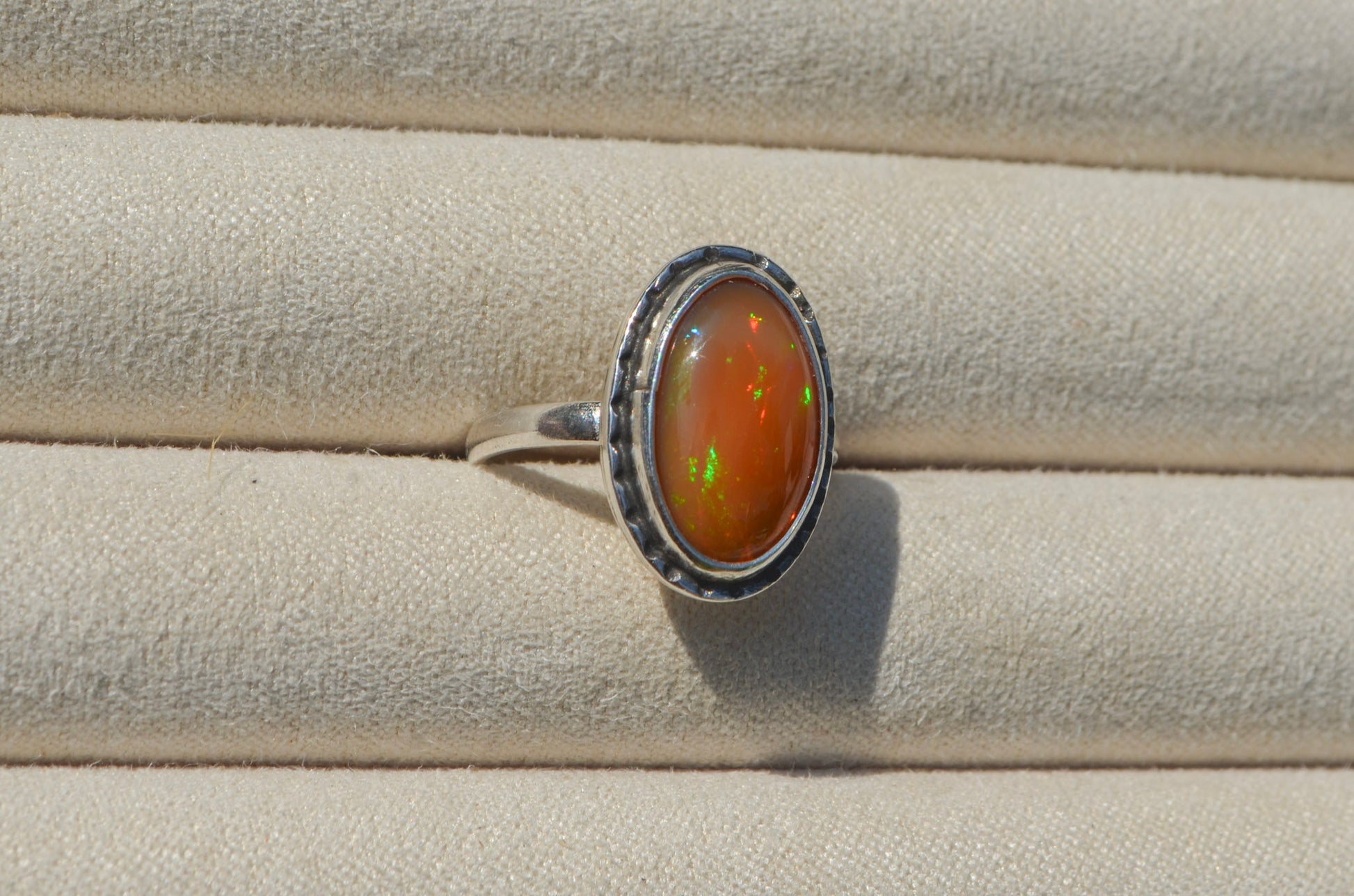 Un diseño que irradia energía y vitalidad, con un ópalo de fuego como protagonista. Sus destellos cálidos y vibrantes reflejan pasión, transformación y la fuerza de tu propia luz interior.