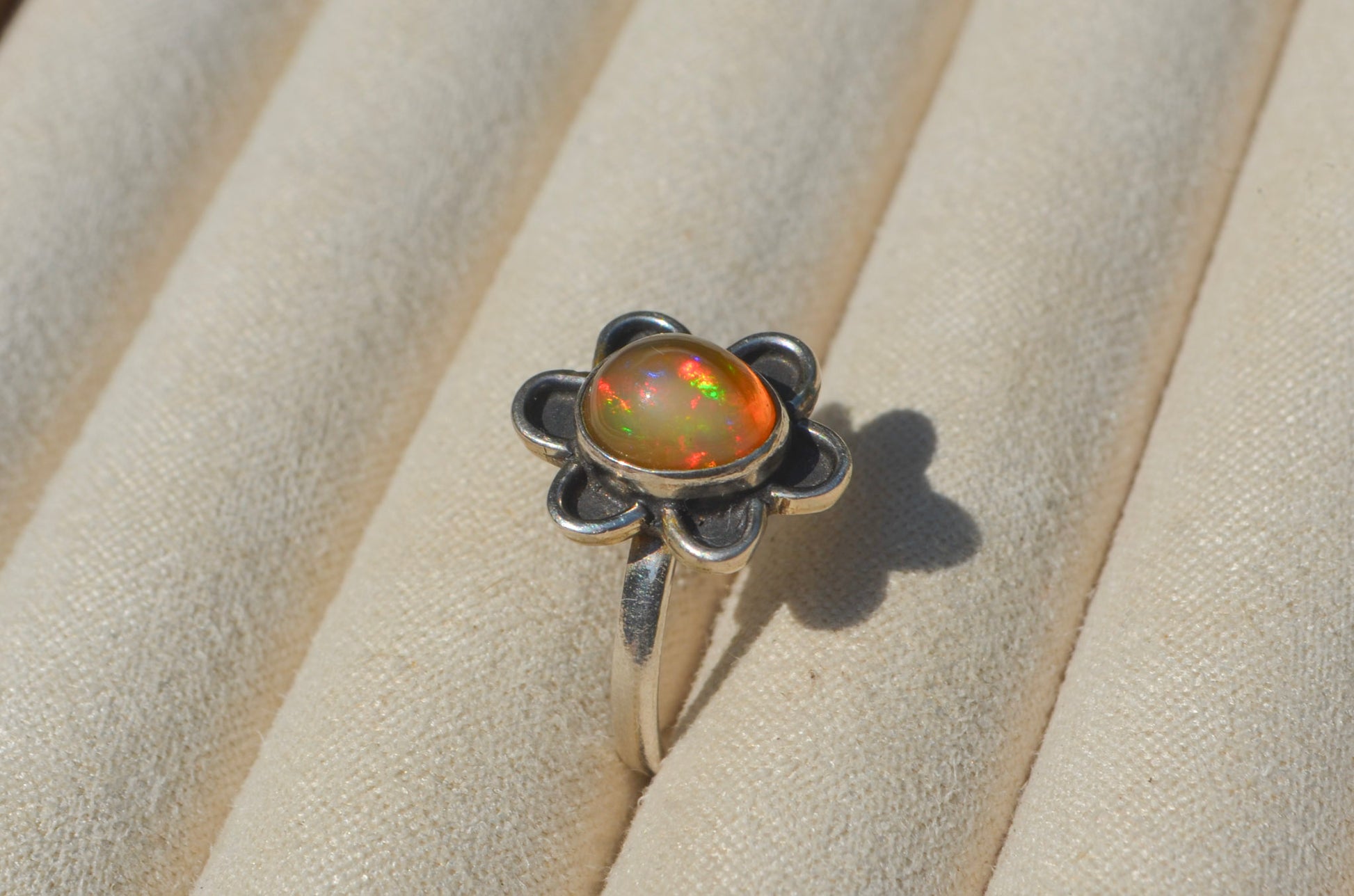 Un diseño delicado que celebra la belleza de la naturaleza, con un ópalo mexicano en el centro que parece florecer con cada movimiento. Su juego de colores único refleja vitalidad, alegría y autenticidad.