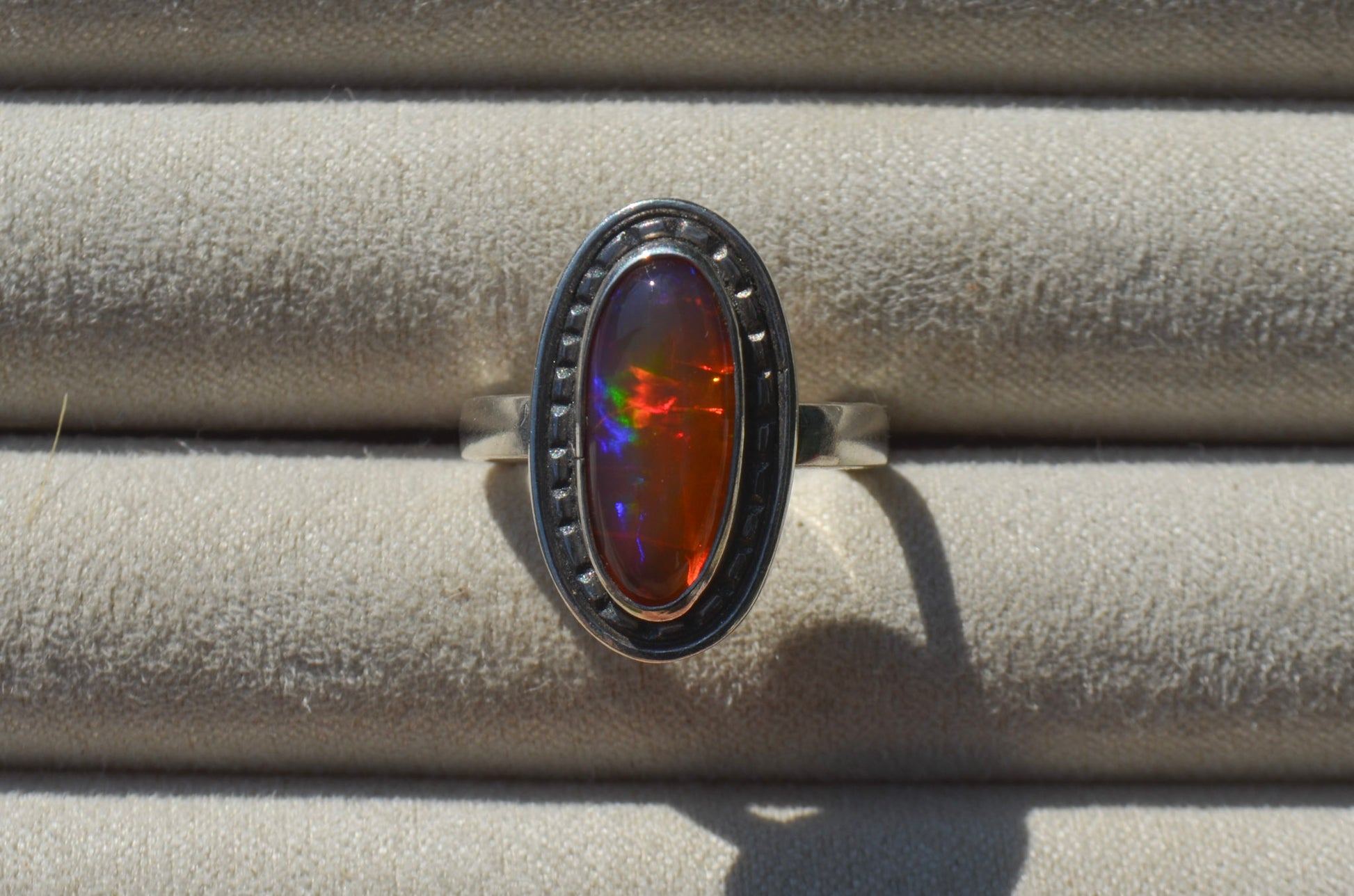 Sostengo – Anillo en plata con ópalo de fuego mexicano